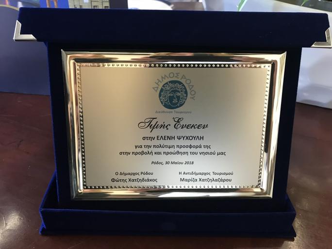 ΔΕΛΤΙΟ ΤΥΠΟΥ-Θέμα: «Η δημοφιλής σεφ Ελένη Ψυχούλη τιμήθηκε από την αντιδήμαρχο Τουρισμού Μαρίζα Χατζηλαζάρου για την προσφορά της στην προβολή της Ρόδου –Τέθηκαν οι βάσεις για περαιτέρω συνεργασία». Η δημοφιλής σεφ της τηλεόρασης, η ευρέως γνωστή δημοσιογράφος γαστρονομίας κα Ελένη Ψυχούλη, που αγαπήθηκε από το κοινό μέσα από την παρουσίαση της εκπομπής «Σεφ στον αέρα» της τηλεόρασης του Σκάϊ και η οποία έχει συνεργασθεί με τα περισσότερα έντυπα γαστρονομίας της χώρας και όχι μόνον, τιμήθηκε σήμερα (Τρίτη 5 Ιουνίου 2018) από την αντιδήμαρχο Τουρισμού, Διεθνούς Προβολής και Αποδήμων Ροδίων κα Μαρίζα Χατζηλαζάρου για τη συνολική της προσφορά στην προβολή και προώθηση της Ρόδου και μέσα από τη γαστρονομική της παράδοση, σε μία ξεχωριστή εκδήλωση που έλαβε χώρα στην αίθουσα εθιμοτυπίας, στο Δημαρχιακό Μέγαρο. Η κα Ψυχούλη, μία έντονη και σύνθετη προσωπικότητα που συνδυάζει μοναδικά, τέχνη, γευσιγνωσία, μαγειρική, συγγραφή, καθώς έχει γράψει και βιβλία γαστρονομίας, αλλά και επιχειρηματικότητα, που όπως λένε όσοι τη γνωρίζουν «με ό,τι κι αν καταπιαστεί το κάνει με την καρδιά της», λατρεύει τη Ρόδο, έχει επισκεφθεί το νησί πολλές φορές και έχει προσωπικούς φίλους στη Ρόδο. Η γνωστή σεφ βρέθηκε στη Ρόδο για λίγες ημέρες, μαζί με άλλους συναδέλφους της δημοσιογράφους γαστρονομίας, στο πλαίσιο ενός προγράμματος για την προβολή της γαστρονομίας και των παραδοσιακών γεύσεων του νησιού, με τη στήριξη της οικογένειας Καμπουράκη, ιδιοκτήτριας των ξενοδοχείων Rodos Palace και Mediterranean . Όπως μάλιστα τόνισε και η ίδια μιλώντας με την αντιδήμαρχο κα Χατζηλαζάρου, «θεωρώ ότι οι περισσότεροι Έλληνες δεν γνωρίζουν ότι πέραν της ιστορίας και του πολιτισμού του νησιού, πέρα από τα αξιοθέατα και τις μοναδικές παραλίες του, μπορούν δουν και να γευθούν στη Ρόδο μία μοναδική παραδοσιακή κουζίνα, ότι υπάρχουν εκπληκτικά εστιατόρια στο νησί με διαφορετικές κουζίνες, με καλό φαγητό και πάνω απ΄ όλα να ζήσουν νέες εμπειρίες και τη γνωστή ροδίτικη φιλοξενία». Η προβολή και η ανάδειξη αυτής της «άλλης» Ρόδου, της παράδοσης και της γεύσης, της ροδίτικης γαστρονομίας, που αποτελεί ψηφιδωτό πολυπολιτισμικών γεύσεων ανά τους αιώνες, αλλά και των τοπικών προϊόντων και παραγωγών της Ρόδου, αποτελεί στόχο του Δήμου Ρόδου και προς την κατεύθυνση αυτή κινούνται οι ενέργειες και η περαιτέρω συνεργασία που θα έχει η κα Χατζηλαζάρου και η Διεύθυνση Τουρισμού Δήμου Ρόδου με την κα Ψυχούλη, συνεργασία που υπογράμμισε η αντιδήμαρχος: «αναμένεται να ξεκινήσει τον ερχόμενο Σεπτέμβριο με την υλοποίηση, σε πρώτη φάση, από κοινού, μιας εκδήλωσης στο πλαίσιο του εορτασμού της Παγκόσμιας Ημέρας Τουρισμού και της γιορτής Γαστρονομίας που διοργανώνει κάθε χρόνο η Διεύθυνση Τουρισμού Δήμου Ρόδου, με στόχο την ανάδειξη όχι μόνον της γαστρονομίας του νησιού, αλλά κυρίως της τοπικής κουζίνας, των τοπικών παραδοσιακών γεύσεων, των ντόπιων παραγωγών και των τοπικών προϊόντων που παράγει η ροδίτικη γη. Παράλληλα σκοπεύουμε να προβούμε και στην έκδοση ενός βιβλίου που θα αναδεικνύει γεύσεις και αρώματα, τα αγνά, ποιοτικά και νόστιμα ροδίτικα φαγητά και προϊόντα και θα προβάλλει την παραδοσιακή κουζίνα του νησιού και τα εστιατόρια του. Θα αποτελεί αποτύπωμα στη διαφορετικότητα των γεύσεων που υπάρχουν στη Ρόδο». Η κα Ψυχούλη ευχαρίστησε θερμά την αντιδήμαρχο για τη βράβευση της, δηλώνοντα