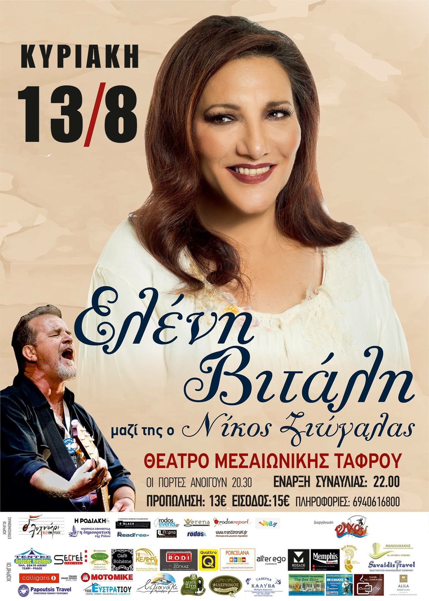 Μοναδικές στιγμές υπόσχεται να μας χαρίσει η Ελένη Βιτάλη αύριο -Κυριακή 13 Αυγούστου στο Θέατρο της Μεσαιωνικής Τάφρου μαζί της ο Νίκος Ζιώγαλας