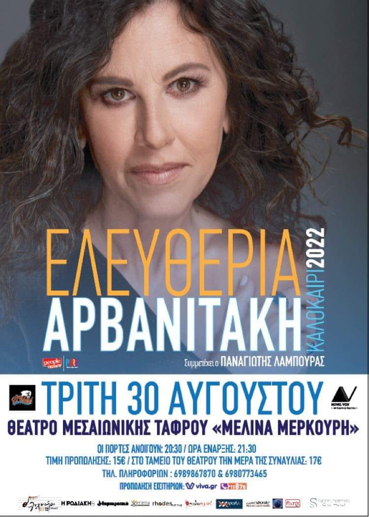 μας έμαθε να αγαπάμε κι από τον ποιητικό λόγο του Οδυσσέα Ελύτη και του Μιχάλη Γκανά ως τον σύγχρονο λόγο της Λίνας Νικολακοπούλου και του Νίκου Μωραϊτη, η Ελευθερία Αρβανιτάκη μας υπόσχεται μια βραδιά γεμάτη από τα χρώματα της μουσικής της, γεμάτη από τραγούδια που θα τραγουδάμε μαζί της από την αρχή ως το τέλος.
