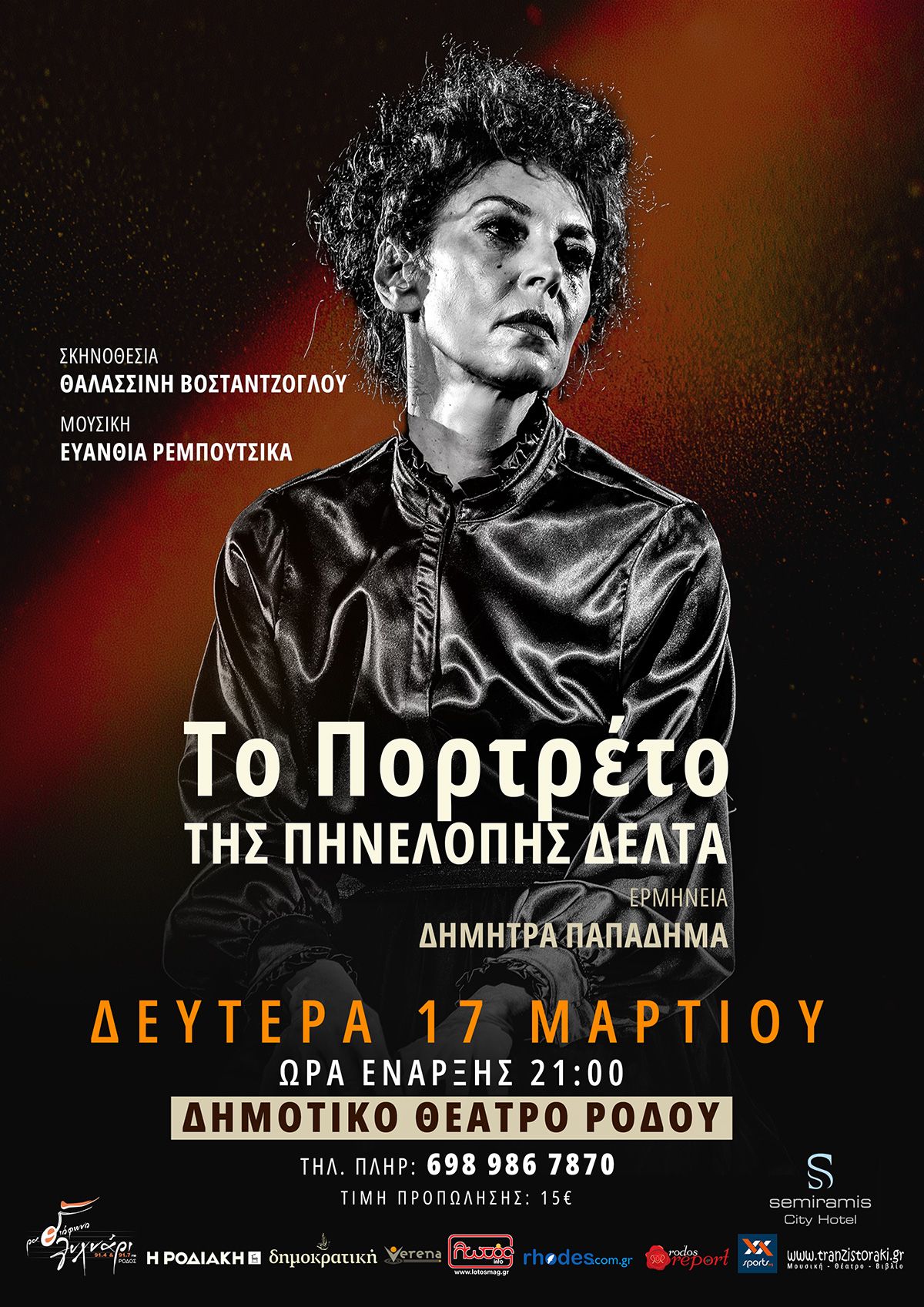 Το Πορτραίτο της Δήμητρας Παπαδήμα σε σκηνοθεσία Θαλασσινής Βοσταντζόγλου παρουσιάζεται την Δευτέρα 17 Μαρτίου για μια μοναδική παράσταση στο Δημοτικό Θέατρο Ρόδου!!