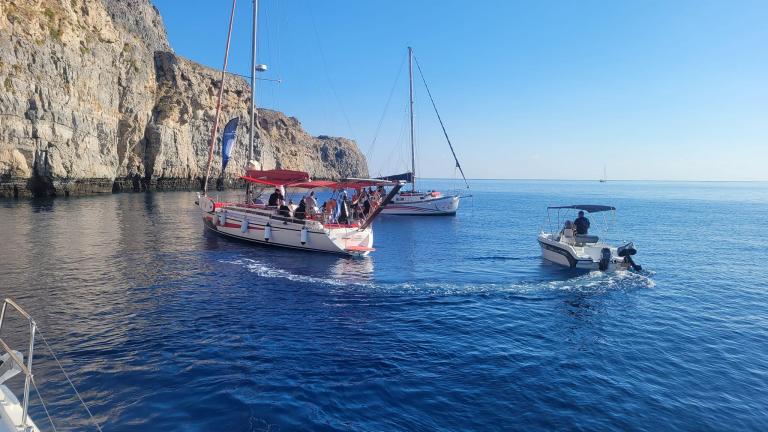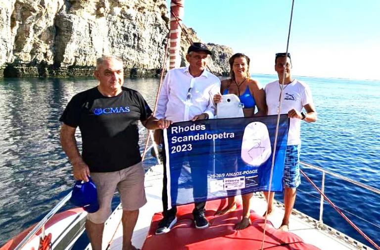 Η Περιφέρεια Νοτίου Αιγαίου διοργάνωσε τριήμερο επίδειξης αγωνιστικής ελεύθερης κατάδυσης με σκανδαλόπετρα στη θαλάσσια περιοχή κάτω από την Ακρόπολη της Λίνδου.