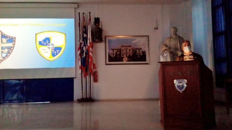 Στην συνέχεια ο Διευθυντής Σπουδών Πλοίαρχος κ. Νικόλαος Πατσάκης (ΠΝ), επαίνεσε με ιδιαίτερα κολακευτικά λόγια το έργο της Πολιτιστικής ομάδας"Αρχιπέλαγος" και αναφέρθηκε στην ανάγκη της ιστορικής μνήμης αλλά και ιστορικής συνέχειας .