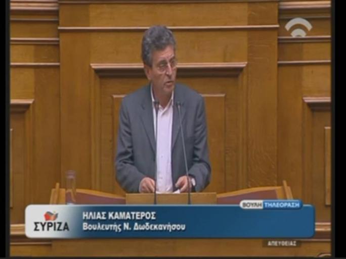 ΔΕΛΤΙΟ ΤΥΠΟΥ-Η. Καματερός: Ομιλία στη Βουλή για τον εξωδικαστικό μηχανισμό Στη συζήτηση για τον νόμο που αφορά τον εξωδικαστικό μηχανισμό ρύθμισης οφειλών επιχειρήσεων τοποθετήθηκε στην Ολομέλεια της Βουλής (27/4/2017) ο Βουλευτής Δωδεκανήσου Ηλίας Καματερός. Με αφορμή τις ομιλίες των βουλευτών της ΝΔ έκανε στην αρχή της τοποθέτησής του αναφορά στον νόμο Δένδια, ο οποίος, απέτυχε να δώσει λύση στο πρόβλημα των χρεωμένων επιχειρήσεων. Στη συνέχεια ο Ηλίας Καματερός αποδόμησε με στοιχεία την αντιπολιτευτική τακτική της ΝΔ, η οποία για να αποφύγει τις αποκαλύψεις για το μεγάλο φαγοπότι της προηγούμενης περιόδου, έχει ως μόνιμη επωδό το "φύγετε....φύγετε......φύγετε...!!!" Συγκεκριμένα, ο Δωδεκανήσιος βουλευτής επισήμανε πως όλες οι προβλέψεις της ΝΔ, είτε αφορούσαν την αξιολόγηση είτε το ασφαλιστικό είτε τα πρωτογενή πλεονάσματα, διαψεύστηκαν πανηγυρικά. Όσον αφορά το πρωτογενές πλεόνασμα σημείωσε πως αυτό επιτεύχθη με μέτρα που πήρε η κυβέρνηση για την καταπολέμηση του λαθρεμπορίου, την πάταξη της φοροδιαφυγής, αλλά και την εξοικονόμηση πόρων από την κατασπατάληση του δημόσιου χρήματος που γινόταν με το πάρτυ που είχε στήσει το τρίγωνο της διαπλοκής. «Κόφτης θα ενεργοποιηθεί μόνο για τις σπατάλες και τις ρεμούλες, που αποκαλύπτονται αυτή την περίοδο», είπε χαρακτηριστικά. Με καταστροφολογικές προβλέψεις και αστήρικτα επιχειρήματα, συνέχισε ο Ηλίας Καματερός, προσπαθεί η ΝΔ να δικαιολογήσει την άρνηση ψήφου στο συγκεκριμένο νομοσχέδιο. Επικαλούνται οι βουλευτές της πως δεν είναι εξωδικαστικός, εφόσον προβλέπονται δικαστικές αποφάσεις, αποσιωπώντας σκόπιμα πως ο νόμος με σαφήνεια τονίζει ότι αυτές είναι προαιρετικές και δεν προβλέπονται για όλες τις περιπτώσεις. «Εάν δεν υπήρχε αυτή η πρόβλεψη του νόμου, τότε θα μπλόκαραν τα δικαστήρια με εφέσεις και προσφυγές», πρόσθεσε ο βουλευτής του ΣΥΡΙΖΑ. «Φαίνεται ότι όλοι εσείς –απευθυνόμενος στους βουλευτές της αξιωματικής αντιπολίτευσης– που έχετε βολευτεί, δεν έχετε πάει σε μια τράπεζα να υποβάλλετε τα χαρτιά σας για να σας ρυθμίσει μια κάρτα ή ένα μικρό δάνειο!!! Ξέρετε πόσα χαρτιά και πόσα δικαιολογητικά χρειάζονται σε αυτές τις περιπτώσεις;», απάντησε ο Ηλίας Καματερός στο επιχείρημα τους περί γραφειοκρατικών σκοπέλων, που θέτει το νομοσχέδιο. «’Οχι μόνο οι γραφειοκρατικές διαδικασίες προβλέπονται να είναι μικρότερες, αλλά επιτέλους θα μπει μία τάξη στο χάος που υπάρχει ως αυτή τη στιγμή, κι ο πολίτης δεν ξέρει πού να πρωτοπληρώσει. Αυτό το χάος κι αυτή τη γραφειοκρατία έρχεται να ρυθμίσει ο συγκεκριμένος νόμος», υπογράμμισε στο τέλος της ομιλίας του ο Ηλίας Καματερός. Ολόκληρη την ομιλία του Ηλία Καματερού μπορείτε να την παρακολουθήσετε στο παρακάτω link: https://www.youtube.com/watch?v=1W_9Oa2GuWk&feature=youtu.be