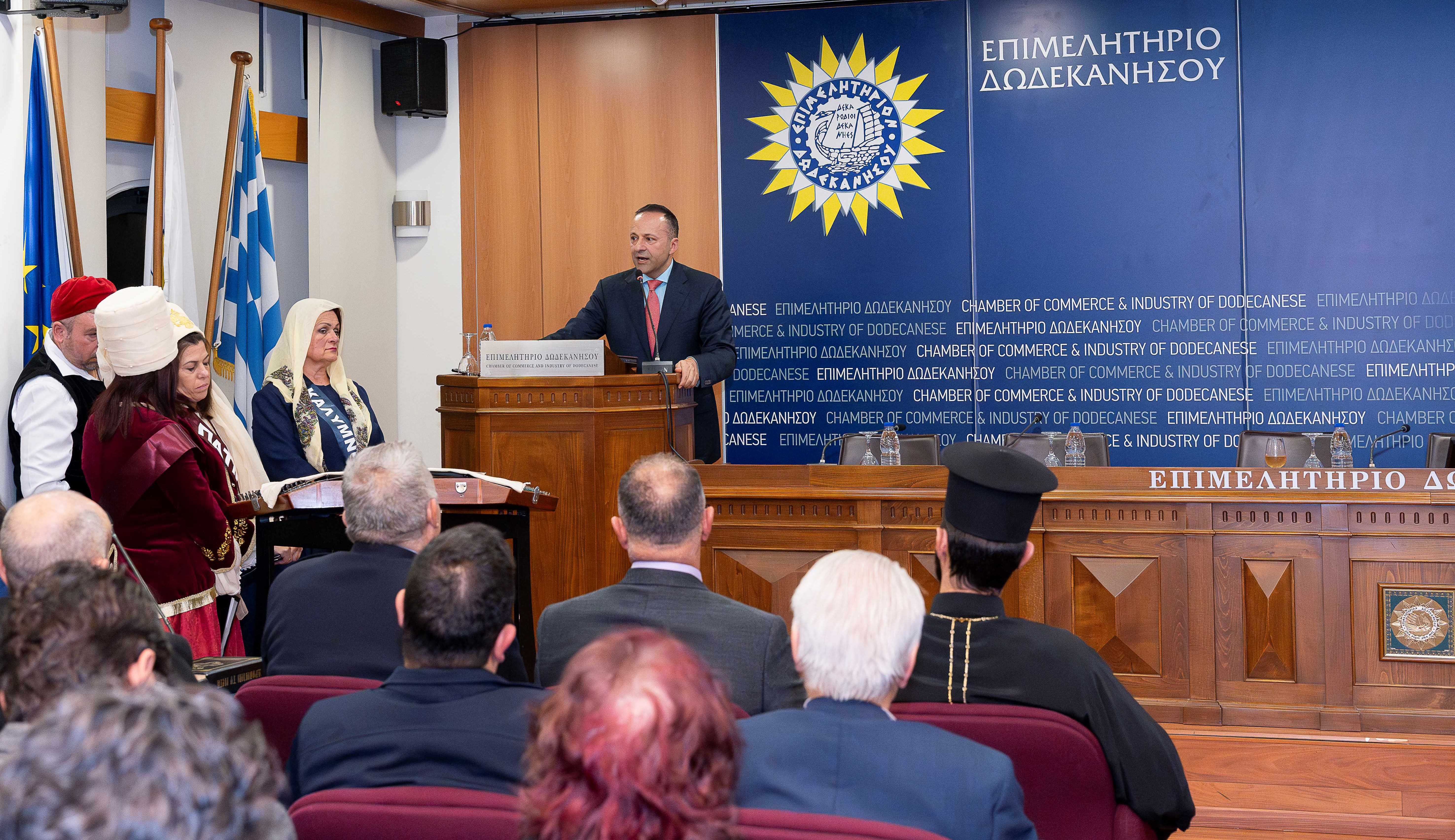 Ο πρόεδρος του Επιμελητηρίου Δωδεκανήσου Ιωάννης Γεωργίου Πάππου, απευθυνόμενος στους παρευρισκόμενους, υπογράμμισε τη σπουδαιότητα των συνεργασιών και της ομόνοιας σε όλα τα επίπεδα για την οχύρωση απέναντι στις δυσκολίες και στις κρίσεις.