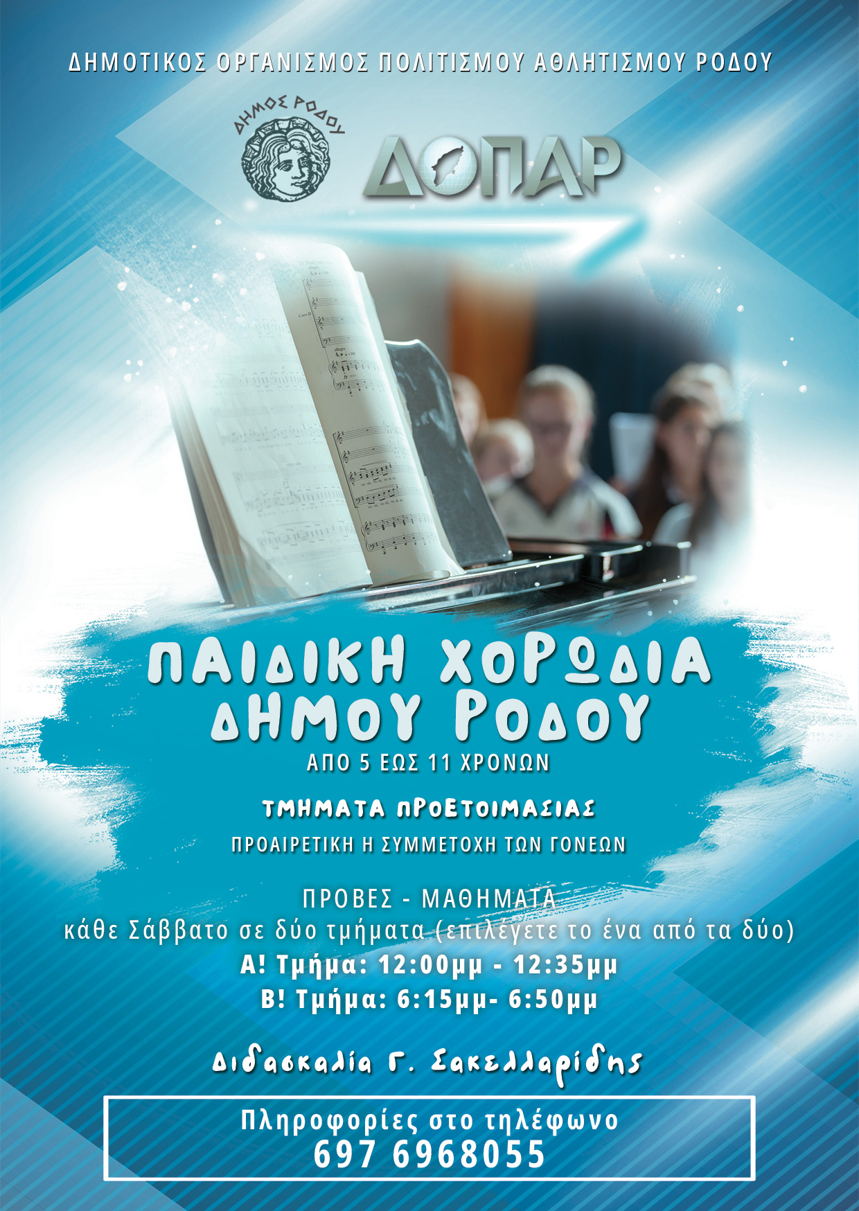 Αγαπητοί γονείς δώστε την ευκαιρία στα παιδιά σας να γνωρίσουν την ομορφιά της μουσικής μέσα από την συμμετοχή τους στην ΠΑΙΔΙΚΗ ΧΟΡΩΔΙΑ ΔΗΜΟΥ ΡΟΔΟΥ.
