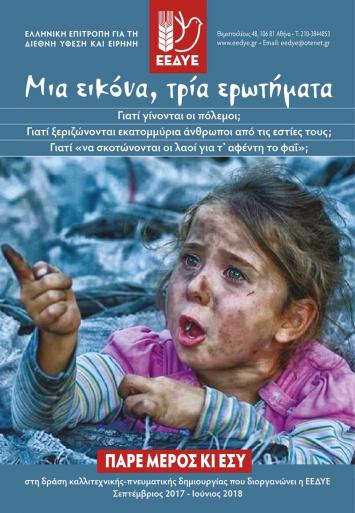 ΔΕΛΤΙΟ ΤΥΠΟΥ-Η Ροδιακή Επιτροπή Ειρήνης σε πρόσφατη συνεδρίαση της γραμματείας της υιοθέτησε τη νέα πρωτοβουλία της ΕΕΔΥΕ (Ελληνική Επιτροπή για την Διεθνή Υφεση και Ειρήνη) «Μια εικόνα, τρία ερωτήματα»: Γιατί γίνονται οι πόλεμοι ; Γιατί ξεριζώνονται εκατομμύρια άνθρωποι από τις εστίες τους ; Γιατί «να σκοτώνονται οι λαοί για τ’ αφέντη το φαϊ ; Η ιδέα της νέας πρωτοβουλίας βασίζεται σε μια χαρακτηριστική φωτογραφία παιδιού από εμπόλεμη ζώνη της Μέσης Ανατολής και συνοδεύεται από τα προαναφερόμενα ερωτήματα. Η χρονική διάρκεια της συμμετοχής των μαθητών εκτείνεται σε όλη τη σχολική περίοδο 2017-2018, ώστε να διευκολύνεται η συμμετοχή των μαθητών, παράλληλα προς την όλη δραστηριότητα των σχολείων. Οι μαθητές των σχολείων μπορούν να συμμετάσχουν με κάθε μορφή έκφρασης – καλλιτεχνικής δημιουργίας (βίντεο, μουσική, ποιήματα, πεζά κείμενα, ζωγραφιές, γκράφιτι κλπ.) είτε ατομικά, είτε ομαδικά. Τα έργα των μαθητών θα παρουσιαστούν σε εκδήλωση της Ροδιακής Επιτροπής Ειρήνης σε συνεννόηση με τα σχολεία για το καλύτερο δυνατό αποτέλεσμα. Στο κάλεσμα της ΕΕΔΥΕ και της Ροδιακής Επιτροπής Ειρήνης προς τους εκπαιδευτικούς, γονείς εκφράζεται η προσδοκία θετικής ανταπόκρισης και συμμετοχής στην πρωτοβουλία αυτή καθώς και οι πιο θερμές ευχές για μια δημιουργική σχολική χρονιά. Ρόδος 10-10-2017