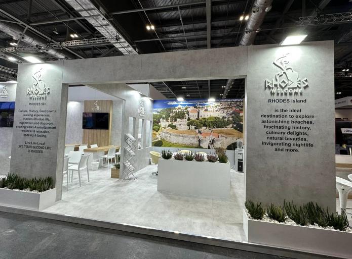 Το 55 τετραγωνικών μέτρων περίπτερο της Ρόδου, λειτουργεί ως «κόμβος δικτύωσης» φιλοξενώντας τις συναντήσεις και τα ραντεβού των επιχειρηματιών του νησιού με τους εκπροσώπους των διεθνών τουριστικών οργανισμών. Εντυπωσιάζει με το μοντέρνο σχεδιασμό του, τον τεχνολογικό του εξοπλισμό και την αισθητική του, καταφέρνοντας να αναδείξει την ξεχωριστή φυσιογνωμία του προορισμού.