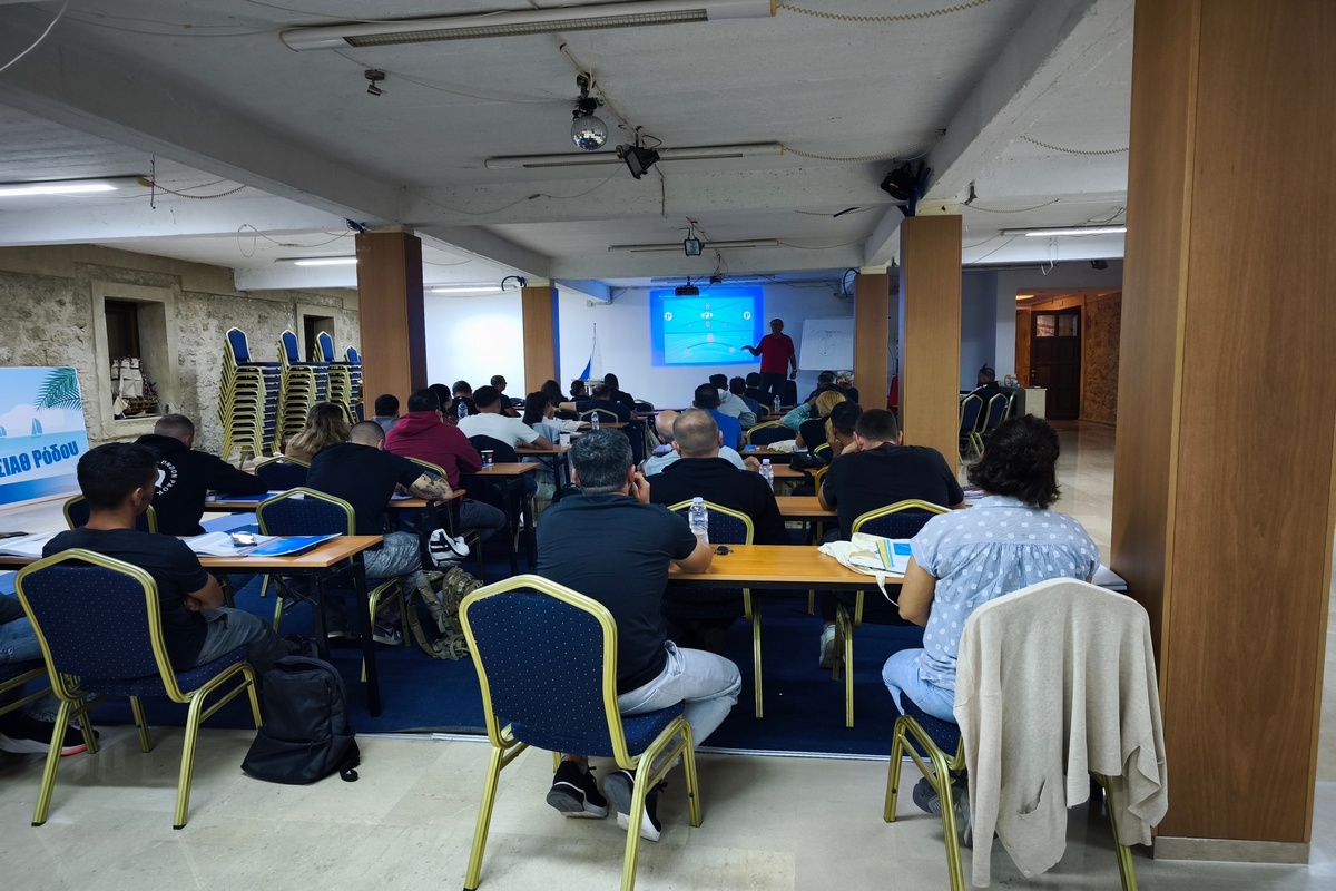 Τα θεωρητικά μαθήματα γίνονται στην αίθουσα του Συλλόγου, μέχρι σήμερα δε, στο τέλος του πρώτου από τους δύο μήνες που διαρκεί η εκπαίδευση, έχει ολοκληρωθεί η διδασκαλία των παρακάτω ενοτήτων: