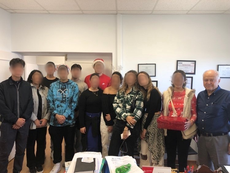 Με άκρως εορταστική διάθεση αντιπροσωπεία μαθητών του Ενιαίου Λυκείου Απερίου Καρπάθου , σκόρπισε χριστυπγεννιάτικη νότα σήμερα το πρωί (02/12) στο Δημαρχείο με την όμορφη παρουσία τους και τα κάλαντα των Χριστουγέννων που έψαλαν στο Δήμαρχο Καρπάθου . Το Ενιαίο Λύκειο Απερίου έδωσε το έναυσμα για τις φετινές εθιμοτυπικές επισκέψεις των σχολείων του νησιού μας στο χώρο του Δημαρχείου, εν όψει των Χριστουγέννων .