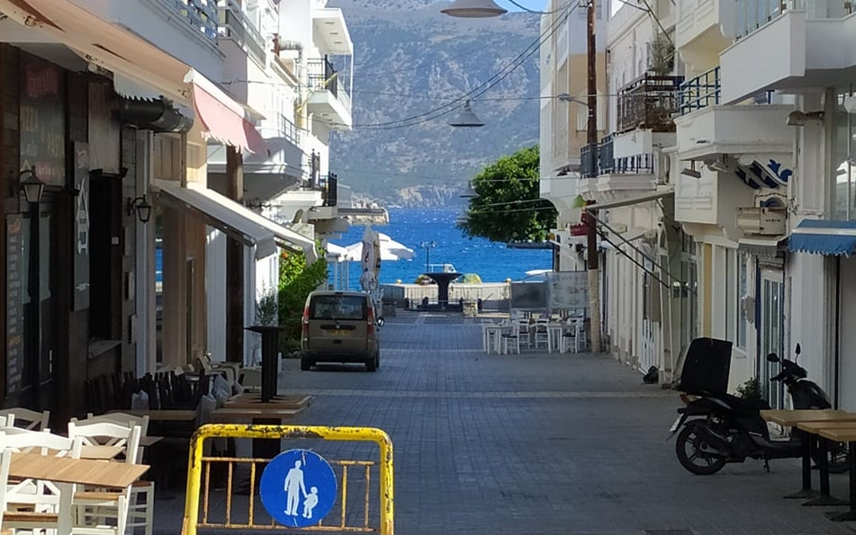 Οι άνθρωποι στέκουν λίγο παραπάνω σιωπηλοί, κάνουν υπολογισμούς και μισολένε τις εκτιμήσεις τους. Από χρόνια το νησί έχει διαλέξει τον μονόδρομο της τουριστικής ανάπτυξης κι η νέα πραγματικότητα το βρίσκει ανήμπορο, όπως κι όλο τον πλανήτη, να κρατά την ανάσα του.
