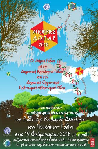 Ο Δήμος Ρόδου, η Δημοτική Κοινότητα Ρόδου και ο Δ.Ο.Π.Α.Ρ. προγραμματίζουν στον υπέροχο χώρο Πευκάκια –Ροδίνι το παραδοσιακό ξεφάντωμα της Καθαρής Δευτέρας . Τραπέζι με πλούσιο παραδοσιακό μπουφέ θα στρωθεί για να γιορτάσουμε όλοι μαζί με άφθονο κρασί, λαγάνες και σαρακοστιανά εδέσματα ….. και το γλέντι θα πλαισιωθεί με ζωντανή μουσική από τοπική ορχήστρα. Σας περιμένουμε όλους να γιορτάσουμε μαζί!!!