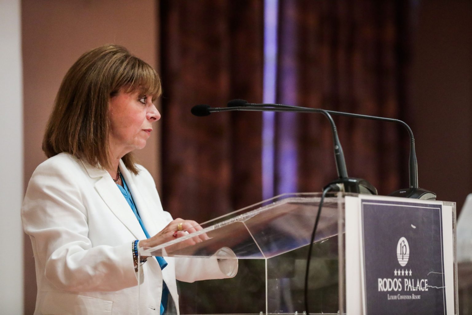 Η Πρόεδρος της Δημοκρατίας Κατερίνα Σακελλαροπούλου απηύθυνε χαιρετισμό στο 4ο Συμπόσιο Διεθνούς Δικαίου και Διεθνούς Πολιτικής για το Αιγαίο και την Ανατολική Μεσόγειο με θέμα «40 χρόνια από τη Σύμβαση για το Δίκαιο της Θάλασσας του Montego Bay 1982», που διοργάνωσε η Ελληνική Εταιρεία Διεθνούς Δικαίου και Διεθνών Σχέσεων στη Ρόδο.