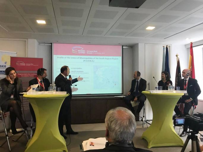 Ο Πρόεδρος της Περιφερειακής Ένωσης Δήμων και Κοινοτήτων Νοτίου Αιγαίου κος Φώτης Χατζηδιάκος, ο Γενικός Γραμματέας κος Γεώργιος Πόκκια και το μέλος της εκτελεστικής Γραμματείας, Δήμαρχος Μυκόνου κος Κωνσταντίνος Κουκάς, συμμετείχαν σε εκδηλώσεις που πραγματοποιήθηκαν το τετραήμερο από 9 Οκτωβρίου έως και 12 Οκτωβρίου 2017, στις Βρυξέλες στο πλαίσιο της Ευρωπαϊκής Εβδομάδας Περιφερειών και Πόλεων. Πρόκειται για μια σημαντική δράση - διαβούλευση που διεξάγεται κάθε χρόνο στην έδρα του Ευρωπαϊκού Κοινοβουλίου και στην οποία εκπρόσωποι περιφερειακών και τοπικών αρχών, εμπειρογνώμονες και πανεπιστημιακοί, έχουν την ευκαιρία να ανταλλάξουν ορθές πρακτικές και τεχνογνωσία στον τομέα της περιφερειακής και αστικής ανάπτυξης. Ο κ. Χατζηδιάκος στην εισήγησή του υπογράμμισε πως «σε μια περίοδο έντονων προκλήσεων και κρίσεων, καθώς και έξαρσης του ευρωσκεπτικισμού, η πολιτική συνοχής, η οποία αποτελεί την κύρια αναπτυξιακή και επενδυτική πολιτική της Ε.Ε., θα πρέπει να συνεχίσει να προωθεί και μετά το 2020 την έξυπνη, βιώσιμη και χωρίς αποκλεισμούς ανάπτυξη, δίνοντας της ταυτόχρονα μια νέα ώθηση προκειμένου να αντιμετωπίσει αποτελεσματικότερα τις ειδικές προκλήσεις μεμονωμένων περιφερειών, όπως είναι οι νησιωτικές περιοχές». Συγκεκριμένα, ο Πρόεδρος της ΠΕΔΝΑ τόνισε πως «με βάση το Άρθρο 174 της Συνθήκης για την Λειτουργία της Ε.Ε. (ΣΛΕΕ) πρέπει να δοθεί ένας σαφής ορισμός της μορφής των γεωγραφικών, δημογραφικών, φυσικών, μόνιμων μειονεκτημάτων που πλήττουν τις νησιωτικές περιοχές και ζήτησε την δημιουργία γραφείου για τα νησιά, το οποίο να συνδέεται με την Γ.Δ. Περιφερειακής Πολιτικής αποσκοπώντας να συμβάλλει στο συντονισμό και στην αναλυτική εξέταση των θεμάτων που αφορούν στις νησιωτικές περιοχές. Ταυτόχρονα, ο κ. Χατζηδιάκος πρότεινε συμπληρωματικούς στο ΑΕγχΠ δείκτες, προκειμένου να αποτυπώνεται πιο ρεαλιστικά η κατάσταση στα νησιά, τη θέσπιση ειδικού προγράμματος για τα νησιά, στα πρότυπα των Αστικών Καινοτόμων Δράσεων και ενίσχυση της τοποκεντρικής προσέγγισης της πολιτικής συνοχής. Θέλουμε μια πολιτική περιφερειακής συνοχής που θα λαμβάνει υπόψιν τις ιδιαιτερότητες των νησιών. Οι πολίτες των μικρών και μεγάλων νησιών έχουν ίσα δικαιώματα με τους πολίτες των Βρυξελών, του Βερολίνου και του Παρισίου». Τέλος ο δήμαρχος πραγματοποίησε δηλώσεις σχετικά με την εισήγησή του στα μέσα ενημέρωσης των Βρυξελών. Στη συζήτηση για το μέλλον της πολιτικής συνοχής, συμμετείχε και η Περιφερειακή Ένωση Δήμων Αττικής, καθώς και οκτώ (8) περιφερειακές αρχές από την Ισπανία, την Ιταλία, την Νορβηγία, την Πολωνία και την Πορτογαλία.