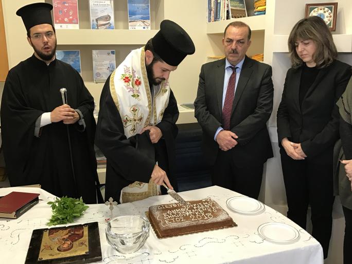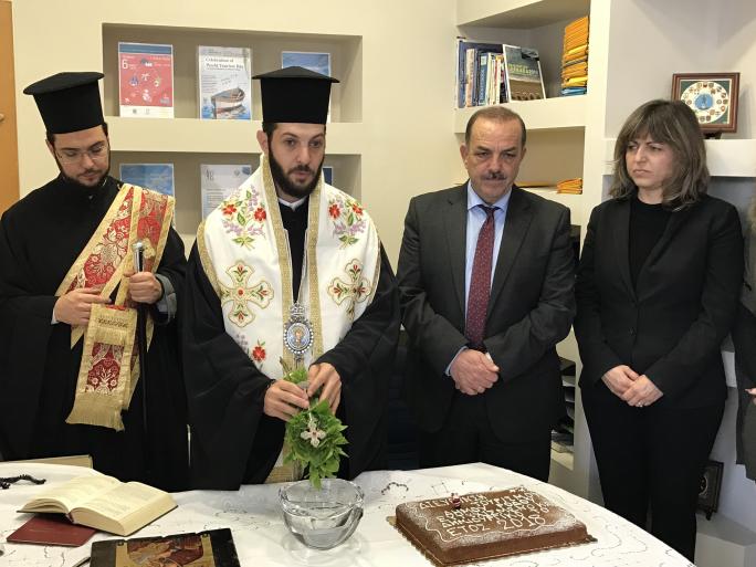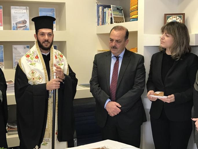 Με τον καθιερωμένο αγιασμό που τέλεσε ο Βοηθός Επίσκοπος του Σεβασμιωτάτου Μητροπολίτου Ρόδου κ. Κύριλλος, παρουσία του δημάρχου Ρόδου κ. Φώτη Χατζηδιάκου, της αντιδημάρχου Τουρισμού, Διεθνούς Προβολής και Αποδήμων Ροδίων κας Μαρίζας Χατζηλαζάρου και άλλων αντιδημάρχων, πραγματοποιήθηκε η κοπή της πρωτοχρονιάτικης πίτας της Διεύθυνσης Τουρισμού του Δήμου Ρόδου, χθες Τρίτη 16 Ιανουαρίου 2018, στα γραφεία της Διεύθυνσης, στο Μαντράκι.