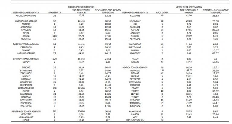 Με βάση τα επιβεβαιωμένα κρούσματα των τελευταίων 7 ημερών, 79 θεωρούνται σχετιζόμενα με ταξίδι από το εξωτερικό και 3.075 είναι σχετιζόμενα με ήδη γνωστό κρούσμα.