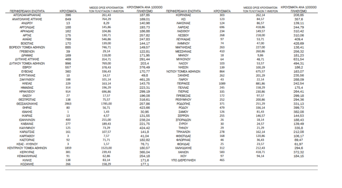 Η σημερινή ανακοίνωση του ΕΟΔΥ:«Τα νέα εργαστηριακά επιβεβαιωμένα κρούσματα της νόσου που καταγράφηκαν τις τελευταίες 24 ώρες είναι 24.308, εκ των οποίων 65 εντοπίστηκαν κατόπιν ελέγχων στις πύλες εισόδου της χώρας.