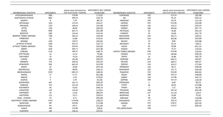 Ο μέσος όρος εισαγωγών του επταημέρου είναι 405 ασθενείς.Η διάμεση ηλικία των κρουσμάτων είναι 35 έτη (εύρος 0.2 έως 106 έτη), ενώ η διάμεση ηλικία των θανόντων είναι 79 έτη (εύρος 0.2 έως 106 έτη)».
