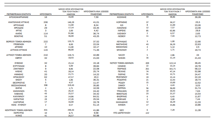 Τα νέα εργαστηριακά επιβεβαιωμένα κρούσματα της νόσου που καταγράφηκαν τις τελευταίες 24 ώρες είναι 3.445, εκ των οποίων 9 εντοπίστηκαν κατόπιν ελέγχων στις πύλες εισόδου της χώρας. Ο συνολικός αριθμός των κρουσμάτων ανέρχεται σε 285.015 (ημερήσια μεταβολή +1.2%), εκ των οποίων 51.4% άνδρες. Με βάση τα επιβεβαιωμένα κρούσματα των τελευταίων 7 ημερών, 94 θεωρούνται σχετιζόμενα με ταξίδι από το εξωτερικό και 2.711 είναι σχετιζόμενα με ήδη γνωστό κρούσμα.