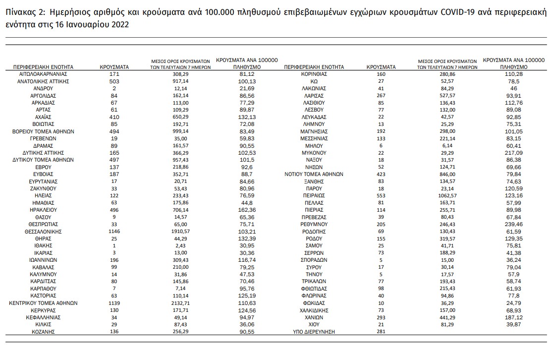 H σημερινή ανακοίνωση του ΕΟΔΥ: «τα νέα εργαστηριακά επιβεβαιωμένα κρούσματα της νόσου που καταγράφηκαν τις τελευταίες 24 ώρες είναι 10.783, εκ των οποίων 55 εντοπίστηκαν κατόπιν ελέγχων στις πύλες εισόδου της χώρας. Ο συνολικός αριθμός των κρουσμάτων ανέρχεται σε 1.660.871 (ημερήσια μεταβολή +0.7%), εκ των οποίων 49.8% άνδρες. Με βάση τα επιβεβαιωμένα κρούσματα των τελευταίων 7 ημερών, 506 θεωρούνται σχετιζόμενα με ταξίδι από το εξωτερικό και 2.146 είναι σχετιζόμενα με ήδη γνωστό κρούσμα.