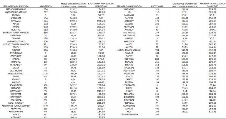 Η σημερινή ανακοίνωση του ΕΟΔΥ: Τα νέα εργαστηριακά επιβεβαιωμένα κρούσματα της νόσου που καταγράφηκαν τις τελευταίες 24 ώρες είναι 19.509, εκ των οποίων 42 εντοπίστηκαν κατόπιν ελέγχων στις πύλες εισόδου της χώρας.