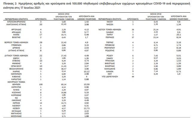 Με βάση τα επιβεβαιωμένα κρούσματα των τελευταίων 7 ημερών, 26 θεωρούνται σχετιζόμενα με ταξίδι από το εξωτερικό και 1.015 είναι σχετιζόμενα με ήδη γνωστό κρούσμα.