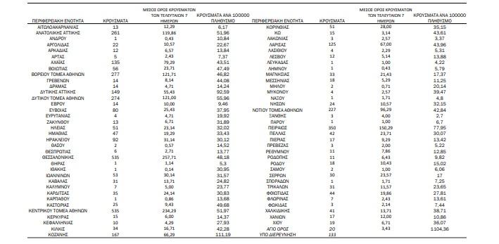 Η διάμεση ηλικία των κρουσμάτων είναι 44 έτη (εύρος 0.2 έως 105 έτη), ενώ η διάμεση ηλικία των θανόντων είναι 79 έτη (εύρος 0 έως 103 έτη)”.