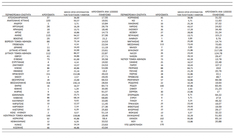 Με βάση τα επιβεβαιωμένα κρούσματα των τελευταίων 7 ημερών, 128 θεωρούνται σχετιζόμενα με ταξίδι από το εξωτερικό και 1.409 είναι σχετιζόμενα με ήδη γνωστό κρούσμα.