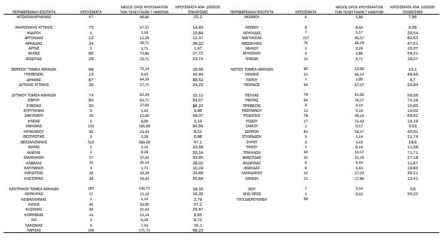 Με βάση τα επιβεβαιωμένα κρούσματα των τελευταίων 7 ημερών, 139