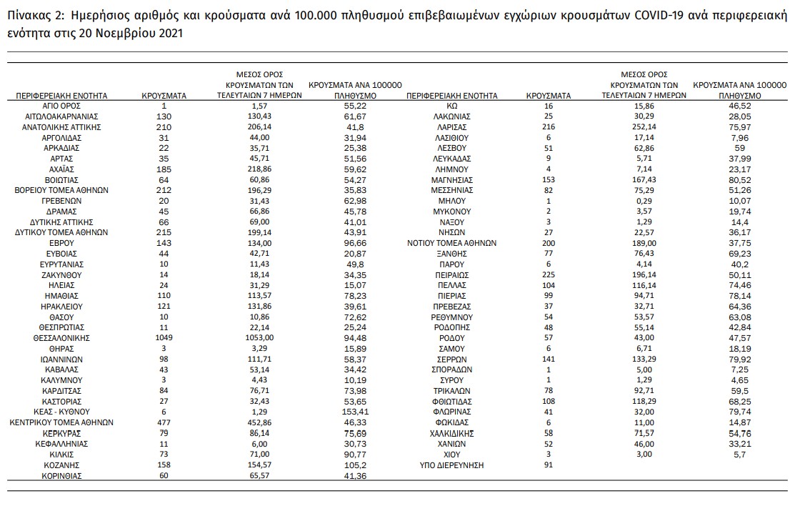 Τα κρούσματα στην Αττική ανέρχονται σε 1.632 τα κρούσματα στην Αττική, εκ των οποίων τα 477 στο κέντρο της Αθήνας. Τα νέα κρούσματα στη Θεσσαλονίκη είναι 1.049.