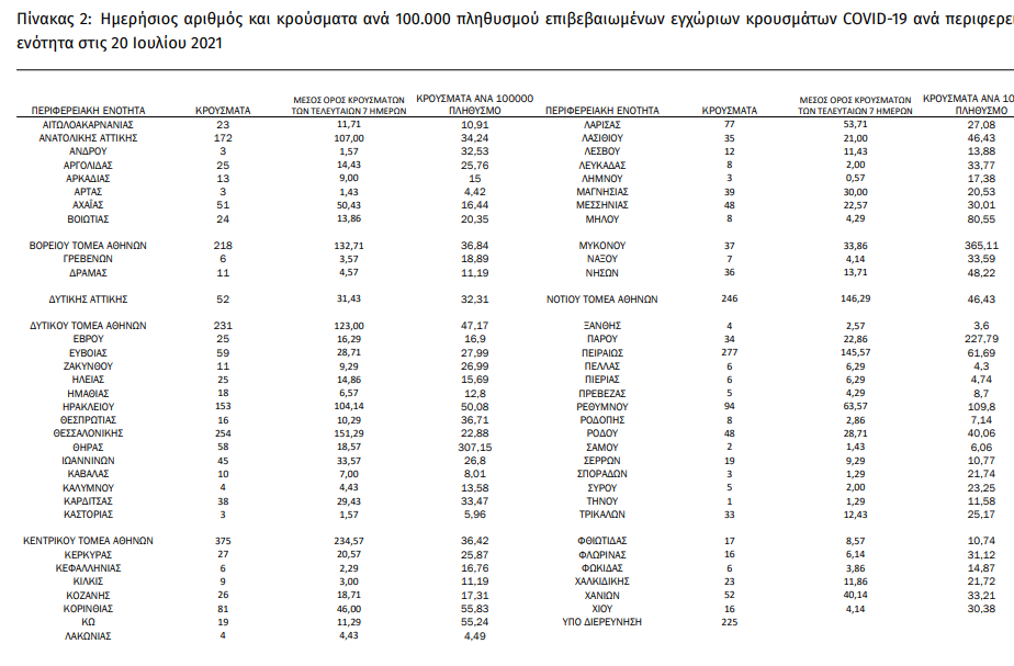 Τα νέα εργαστηριακά επιβεβαιωμένα κρούσματα της νόσου που καταγράφηκαν τις τελευταίες 24 ώρες είναι 3.565, εκ των οποίων 7 εντοπίστηκαν κατόπιν ελέγχων στις πύλες εισόδου της χώρας. Ο συνολικός αριθμός των κρουσμάτων ανέρχεται σε 463.473