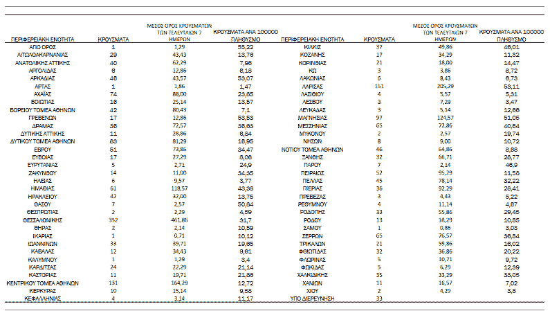 10 εντοπίστηκαν κατόπιν ελέγχων στις πύλες εισόδου της χώρας. Ο συνολικός αριθμός των κρουσμάτων ανέρχεται σε 716.358