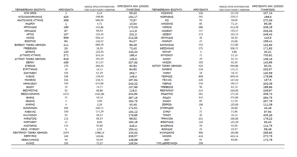 Με βάση τα επιβεβαιωμένα κρούσματα των τελευταίων 7 ημερών,401 θεωρούνται σχετιζόμενα με ταξίδι από το εξωτερικό και 1.750 είναι σχετιζόμενα με ήδη γνωστό κρούσμα.