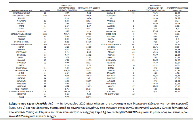 Με βάση τα επιβεβαιωμένα κρούσματα των τελευταίων 7 ημερών, 99 θεωρούνται σχετιζόμενα με ταξίδι από το εξωτερικό και 2.978 είναι σχετιζόμενα με ήδη γνωστό κρούσμα.