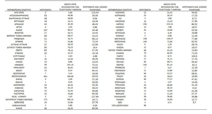 Με βάση τα επιβεβαιωμένα κρούσματα των τελευταίων 7 ημερών, 153 θεωρούνται σχετιζόμενα με ταξίδι από το εξωτερικό και 2.837 είναι σχετιζόμενα με ήδη γνωστό κρούσμα.