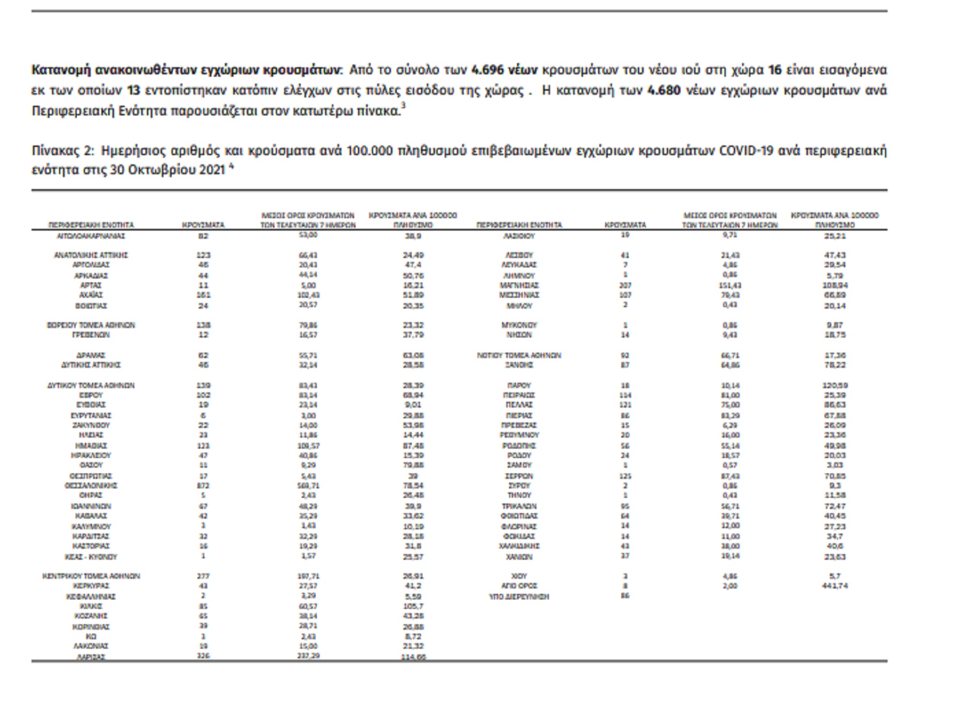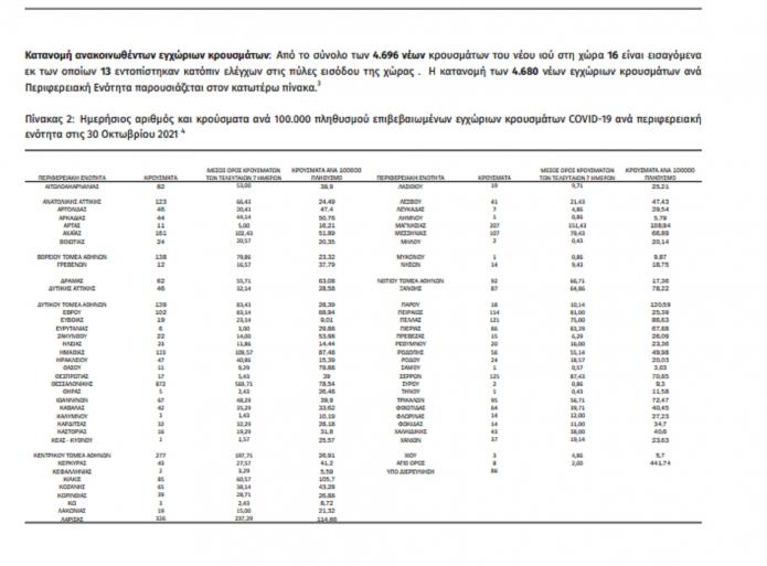 Η σημερινή ανακοίνωση του ΕΟΔΥ: Τα νέα εργαστηριακά επιβεβαιωμένα κρούσματα της νόσου που καταγράφηκαν τις τελευταίες 24 ώρες είναι 4.696, εκ των οποίων 13 εντοπίστηκαν κατόπιν ελέγχων στις πύλες εισόδου της χώρας.