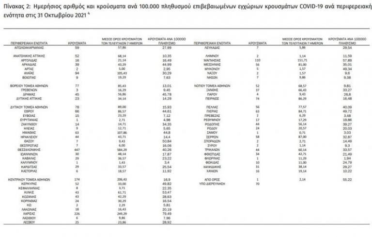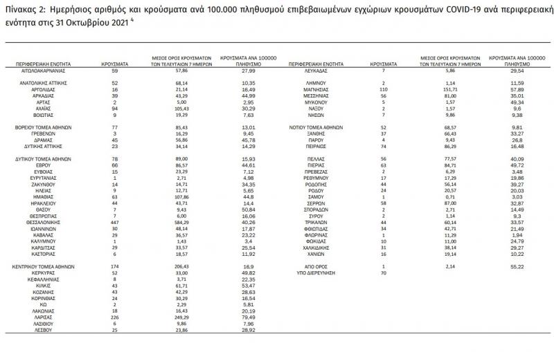 Οι νέοι θάνατοι ασθενών με COVID-19 είναι 44, ενώ από την έναρξη της επιδημίας έχουν καταγραφεί συνολικά 15.938 θάνατοι. Το 95.4% είχε υποκείμενο νόσημα ή/και ηλικία 70 ετών και άνω.