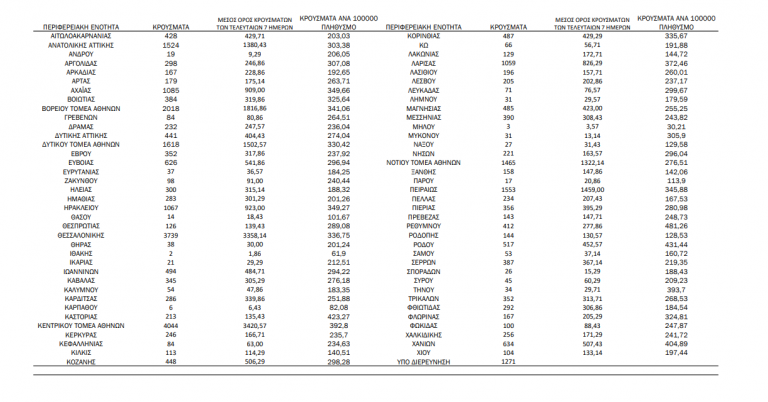 Η σημερινή ανακοίνωση του ΕΟΔΥ: Τα νέα εργαστηριακά επιβεβαιωμένα κρούσματα της νόσου που καταγράφηκαν τις τελευταίες 24 ώρες είναι 33.716 , εκ των οποίων 76 εντοπίστηκαν κατόπιν ελέγχων στις πύλες εισόδου της χώρας. Ο συνολικός αριθμός των κρουσμάτων ανέρχεται σε 1.422.020 (ημερήσια μεταβολή +2.4%), εκ των οποίων 50.1% άνδρες.