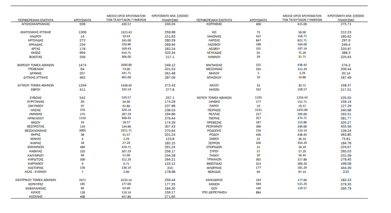Με βάση τα επιβεβαιωμένα κρούσματα των τελευταίων 7 ημερών, 447 θεωρούνται σχετιζόμενα με ταξίδι από το εξωτερικό και 1.610 είναι σχετιζόμενα με ήδη γνωστό κρούσμα.