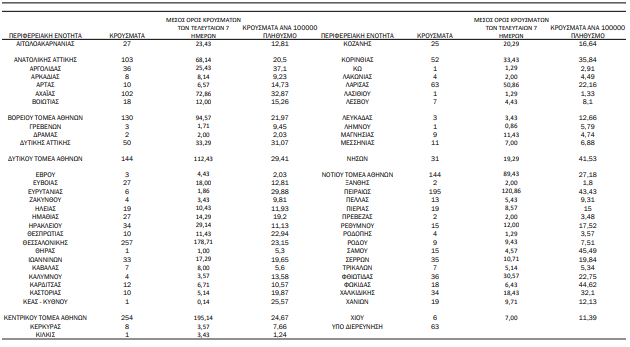 Με βάση τα επιβεβαιωμένα κρούσματα των τελευταίων 7 ημερών, 70 θεωρούνται σχετιζόμενα με ταξίδι από το εξωτερικό και 2.695 είναι σχετιζόμενα με ήδη γνωστό κρούσμα.