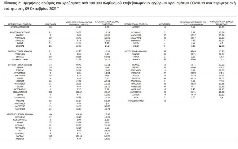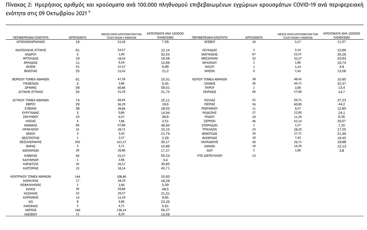 Με βάση τα επιβεβαιωμένα κρούσματα των τελευταίων 7 ημερών, 115 θεωρούνται σχετιζόμενα με ταξίδι από το εξωτερικό και 3.445 είναι σχετιζόμενα με ήδη γνωστό κρούσμα.