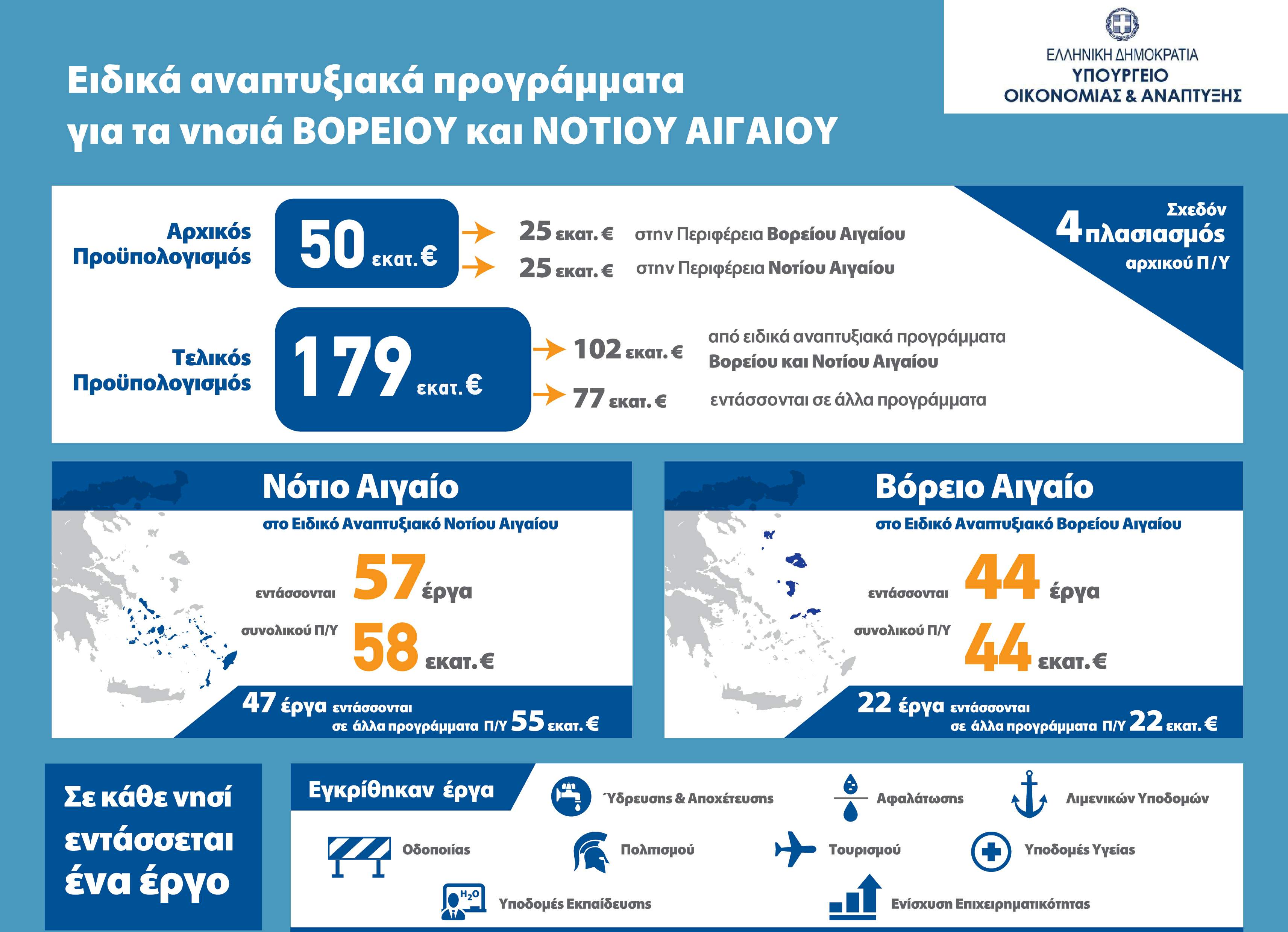 Κρίσιμα έργα υποδομών και δράσεις ενίσχυσης της τοπικής οικονομίας ύψους 180 εκ € στα νησιά Βορείου & Νοτίου Αιγαίου