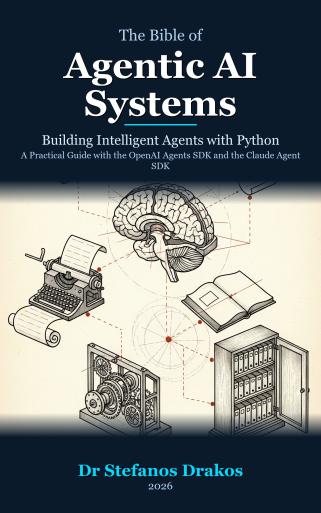 Κυκλοφόρησε παγκοσμίως μέσω της Amazon το νέο βιβλίο του Δρ. Στέφανου Δράκου, μετίτλο «The Bible of Agentic AI Systems». Πρόκειται για το πρώτο βιβλίο διεθνώς που καλύπτει παράλληλα και σε βάθος τα δύο frameworks που ορίζουν σήμερα τον τρόπο με τον οποίο χτίζονται οι παραγωγικοί AIagents: το OpenAIAgentsSDK και το ClaudeAgentSDK. Με 340 σελίδες πυκνού πρακτικού περιεχομένου, 32 κεφάλαια δομημένα σε έξι μέρη, τέσσερα ολοκληρωμένα projects και πλήρη ανοιχτό πηγαίο κώδικα που συνοδεύει κάθε παράδειγμα, το βιβλίο απευθύνεται σε μηχανικούς που θέλουν να προχωρήσουν πέρα από τη θεωρία και τις επιδείξεις, και να χτίσουν συστήματα που δουλεύουν αξιόπιστα σε πραγματικές συνθήκες παραγωγής.