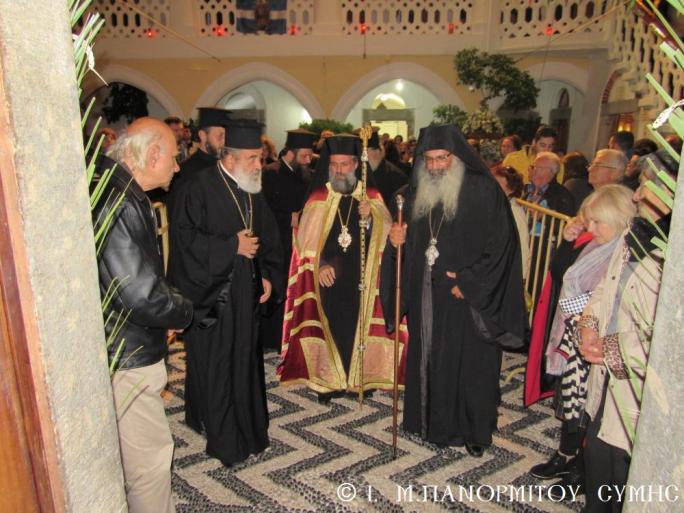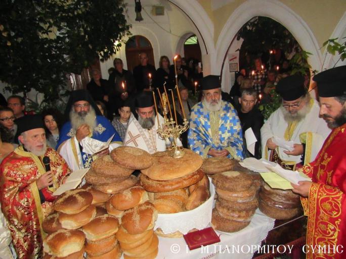 Τήν παραμονή, Τρίτη 7η Νοεμβρίου καί ὥρα 18:00, ἐτελέσθη ὁ Μέγας Πανηγυρικός Ἑσπερινός, στόν ὁποῖο - μέ τήν ἰδιαίτερη ἱεροπρέπεια καί σεμνότητα πού τόν χαρακτηρίζει - χοροστάτησε ὁ Θεοφιλέστατος Ἐπίσκοπος Στρατονικείας κ. Στέφανος, Βοηθός τοῦ Σεβ. Μητροπολίτου Λέρου, Καλύμνου καί Ἀστυπαλαίας κ. Παϊσίου καί νέος Ἱεράρχης τοῦ Οἰκουμενικοῦ Θρόνου. Τήν παραμονή, Τρίτη 7η Νοεμβρίου καί ὥρα 18:00, ἐτελέσθη ὁ Μέγας Πανηγυρικός Ἑσπερινός, στόν ὁποῖο - μέ τήν ἰδιαίτερη ἱεροπρέπεια καί σεμνότητα πού τόν χαρακτηρίζει - χοροστάτησε ὁ Θεοφιλέστατος Ἐπίσκοπος Στρατονικείας κ. Στέφανος, Βοηθός τοῦ Σεβ. Μητροπολίτου Λέρου, Καλύμνου καί Ἀστυπαλαίας κ. Παϊσίου καί νέος Ἱεράρχης τοῦ Οἰκουμενικοῦ Θρόνου. Ὁ Θεοφιλ. παρέστη, προσκληθείς ὑπό τοῦ ἀσθενοῦντος Ποιμενάρχου μας Σεβ. Μητροπολίτου Σύμης κ. Χρυσοστόμου, κατόπιν ἀδείας τοῦ Σεβ. Ἁγίου Λέρου. Τόν ἐπλαισίωσαν κατά τόν Ἑσπερινό, ὁ Πανοσ. Ἀρχιμ. π. Ἱερόθεος Ἡγουμ. τῆς Ἱ. Μονῆς, ὁ φιλοξενούμενος Πανοσ. Ἀρχιμ. π. Ἰωσήφ Λισγάρης προερχόμενος ἐξ Ἀστυπαλαίας, ὁ φιλοξενούμενος Πρωτοπρ. π. Παναγιώτης Τσιριγώτης, Ἀρχιερ. Ἐπίτροπος Κορώνης καί ἱερατικῶς προϊστάμενος τοῦ ἐκεῖσε Προσκυνήματος τῆς Παναγίας Ἐλεήστριας τῆς Ἱ. Μητροπόλεως Μεσσηνίας, οἱ Αἰδεσιμ. π. Κυρ. Μανέττας καί Στ. Μαραβέλιας κληρικοί τῆς Ἱ. Μητροπόλεως Ρόδου καί οἱ αἰδεσ. Ἐφημέριοι τῆς Σύμης. Πρό τῆς ἀπολύσεως ἔλαβε χώρα ἡ Λιτή καί ἔγινε ἡ εὐλόγησις τῶν Ἄρτων στό ἀσφυκτικά γεμάτο προαύλιο τῆς Μονῆς. Ἐν τέλει ὁ Θεοφιλ. κήρυξε τόν θεῖο λόγο, ἀναφερόμενος στήν Ὀρθόδοξη διδασκαλία περί τῶν Ἁγίων Ἀγγέλων, μή παραλείποντας βέβαια νά εὐχαριστήσει θερμά τόν Σεβ. Ποιμενάρχη μας γιά τήν τιμητική του πρός αὐτόν πρόσκληση καί νά εὐχηθεῖ τά προσήκοντα γιά τήν ἀποκατάσταση τῆς ὑγείας του.IMG 5655 Τήν νύκτα καί ὑπό τό ἱλαρό φῶς τῶν δεκάδων καντηλιῶν τοῦ κατάμεστου Καθολικοῦ, ἐτελέσθη κατανυκτική Ἱ. Ἀγρυπνία. Λειτουργός ἦταν ὁ Γεν. Ἀρχιερατικός Ἐπίτροπος τῆς Ἱερᾶς μας Μητροπόλεως Πρωτοπρ. π. Στέφανος Μακρῆς, ὁ ὁποῖος κατά τήν διάρκεια τοῦ Ὄρθρου τῆς ἑορτῆς ἀπήγγειλε ἐμμελῶς ἐνώπιον τῆς ἐφεστίου Εἰκόνος τοῦ Ἀρχαγγέλου, τούς ΚΔ΄ Χαιρετιστηρίους Οἴκους εἰς τοὺς Παμμεγίστους Ταξιάρχας Μιχαὴλ καὶ Γαβριήλ. Ἡ Παννυχίδα ὁλοκληρώθηκε κατά τίς πρῶτες πρωϊνές ὧρες μέ τήν τέλεση τῆς Θ. Λειτουργίας, κατά τήν ὁποία ἑκατοντάδες πιστοί μετέλαβαν τῶν Ἀχράντων Μυστηρίων. Τήν Τετάρτη 8η Νοεμβρίου κυριώνυμη ἡμέρα τῆς Ἑορτῆς, στήν Ἀκολουθία τοῦ Ὄρθρου χοροστάτησε καί πάλι ὁ Θεοφιλέστατος Ἐπίσκοπος Στρατονικείας κ. Στέφανος, ὁ ὁποῖος ἐν συνεχείᾳ τέλεσε καί τήν πανηγυρική Θ. Λειτουργία, συλλειτουργούντων καί τῶν κληρικῶν μας. Ἀξίζει νά σημειωθεῖ ὅτι στίς Ἱερές Ἀκολουθίες ἔψαλαν θαυμασιώτατα Χοροί Ἱεροψαλτῶν, ὑπό τήν διεύθυνση τοῦ Πρωτοψάλτου μας κ. Δημοσθένους Γιανναρᾶ καί τοῦ κ. Μιχαήλ Παπαοικονόμου, Ἰατροῦ ἐκ Ρόδου. Ὁ Θεοφιλέστατος κατά τή διάρκεια τοῦ Κοινωνικοῦ κήρυξε προσηκόντως τόν θεῖο λόγο, εὐχαριστώντας καί πάλι τόν Ἅγιο Σύμης, τόν Ἡγούμ. π. Ἱερόθεο καί τούς Ἐφόρους τῆς Μονῆς, τούς ἐργαζομένους, τούς ἐθελοντές καί ὅλους τούς ἐπωνύμους καί ἀνωνύμους πού συνετέλεσαν στήν ἐπιτυχή διεξαγωγή τῆς Πανηγύρεως. Ἀκολούθως ὁ π. Στέφανος ὡς Γεν. Ἀρχιερατικός Ἐπίτροπος καί ἐκπροσωπῶν τόν ἀσθενοῦντα Σεβ. Μητροπολίτη μας, εὐχαρίστησε ἐκ μέρους του τόν Ἅγιο Στρατονικείας καί τοῦ ἐ