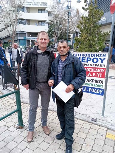 Για τον λόγο αυτό στη Ρόδο, οι εργαζόμενοι της ΔΕΥΑΡ πραγματοποίησαν συγκέντρωση διαμαρτυρίας με πανό και μαύρες σημαίες, στην πλατεία Κύπρου.