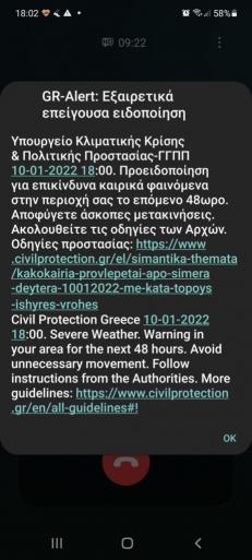 Μήνυμα μέσω του 112 απο την Πολιτική Προστασία έφθασε σε κινητά κατοίκων της Ρόδου για την επερχόμενη κακοκαιρία. Το μήνυμα γράφει: Επείγουσα ειδοποίηση-Προειδοποίηση για επικίνδυνα καιρικά φαινόμενα στην περιοχή σας το επόμενο 48ωρο. Αποφύγετε άσκοπες μετακινήσεις. Ακολουθείστε τις οδηγίες των αρχών
