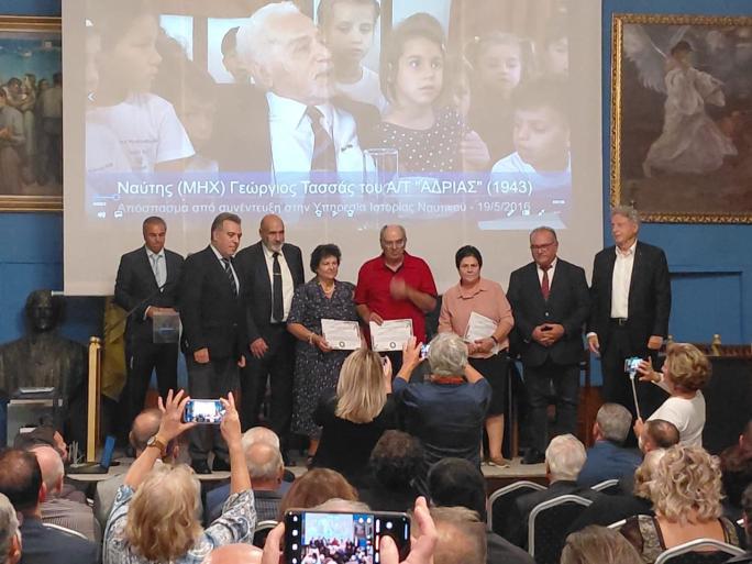 Ξεχωριστή σημασία είχε η απονομή τιμητικής διάκρισης σε απογόνους δύο Καλυμνίων ναυτών του πληρώματος του αντιτορπιλικού “Αδρίας”.