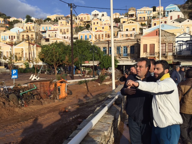 ΔΕΛΤΙΟ ΤΥΠΟΥ-14 Νοεμβρίου 2017-ΜΑΝΟΣ ΚΟΝΣΟΛΑΣ: «Τέσσερα άμεσα μέτρα στήριξης για τη Σύμη, τους πολίτες και τις επιχειρήσεις που υπέστησαν ζημιές από τη θεομηνία» -Στη Σύμη, που υπέστη μεγάλες καταστροφές από τα ακραία καιρικά φαινόμενα, βρίσκεται από νωρίς το πρωί, ο Τομεάρχης Τουρισμού της Νέας Δημοκρατίας και Βουλευτής Δωδεκανήσου, κ. Μάνος Κόνσολας. Ο Βουλευτής, ο οποίος ενημέρωσε και τον Πρόεδρο της Νέας Δημοκρατίας, κ. Κυριάκο Μητσοτάκη, για την κατάσταση που επικρατεί στο νησί, σε δήλωσή του αναφέρει: «Υπάρχουν εικόνες βιβλικής καταστροφής και αυτό που ζητούν οι πολίτες στη Σύμη είναι να εκφραστεί έγκαιρα η αρωγή και η στήριξη της Πολιτείας. Άμεσα θα πρέπει: α) Το νησί να κηρυχθεί σε κατάσταση έκτακτης ανάγκης. β) Να υπάρξει έκτακτη οικονομική ενίσχυση από το Υπουργείο Εσωτερικών στο Δήμο Σύμης για την αποκατάσταση των ζημιών. γ) Να προχωρήσει άμεσα η καταγραφή των ζημιών σε νοικοκυριά και επιχειρήσεις και να υπάρξουν αποζημιώσεις. δ) Να υπάρξει αναστολή στην καταβολή των φορολογικών και ασφαλιστικών υποχρεώσεων των πολιτών και των επιχειρήσεων που υπέστησαν ζημιές». Ο κ. Κόνσολας ενημερώνεται λεπτομερώς για το μέγεθος των ζημιών που προκλήθηκαν, ενώ επισκέφθηκε πολίτες και επιχειρήσεις που υπέστησαν ζημιές από τη θεομηνία.