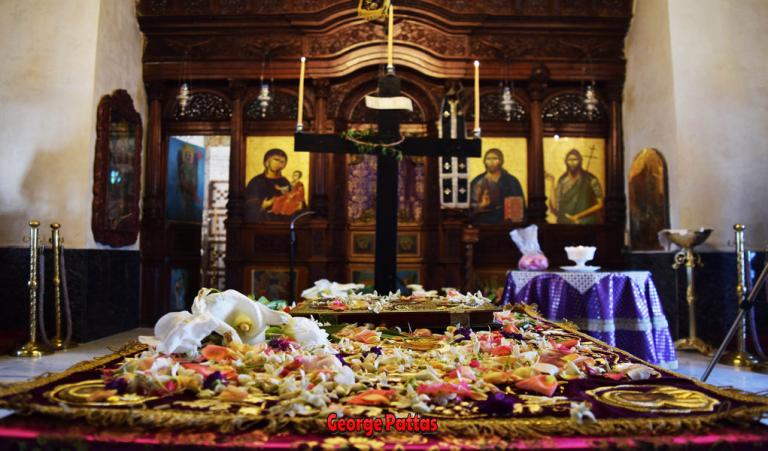 Μεγάλη Παρασκευή, νέα πένθιμη ημέρα για την Ορθοδοξία. Ο Επιτάφιος χωρίς το κουβούκλιο που τον χαρακτηρίζει και που κάθε χρόνο –τουλάχιστον μέχρι τώρα- στολιζόταν με κάθε λογής όμορφα λουλούδια. Ο Χριστός σαν εικόνα κεντημένη στολισμένη με ροδοπέταλα. Η Τελετή της Αποκαθήλωσης με τους δύο ιερείς να γυρνάνε μόνοι τους εντός του Ναού.