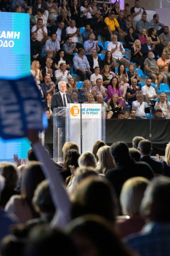 Σας ευχαριστώ για όλη αυτή τη θετική ενέργεια που μου δίνετε απόψε. Είναι ο πρόλογος της Νίκης μας. Της Προοπτικής και της Ελπίδας για τη Ρόδο μας. Όλοι μαζί, ενωμένοι, να σηκώσουμε τη Ρόδο μας ψηλότερα. Εκεί που της πρέπει. Εκεί που αξίζει. Εκεί που θέλουμε όλοι να την καμαρώσουμε με περηφάνια.