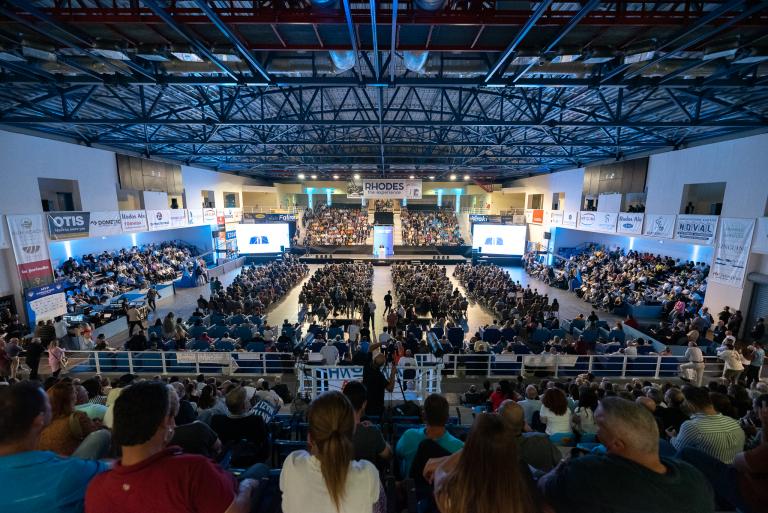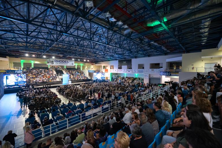 Επικρατούσε ιδιαίτερα ενθουσιώδης ατμόσφαιρα με τον κόσμο να επευφημεί τον Αντώνη Καμπουράκη, τον νυν και επόμενο δήμαρχο της Ρόδου! Συγκεντρώθηκαν περισσότερα από 3.000 άτομα που γέμισαν «ασφυκτικά» το Κλειστό Γυμναστήριο Καλλιθέας και κατέκλυσαν τον περιβάλλοντα χώρο, χαρίζοντας έντονο παλμό στην εκδήλωση.